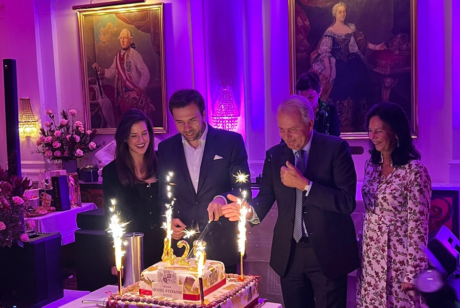 1888: Am 26. Juni übernimmt Carl Witzmann, Ur-Urgroßvater der heutigen Eigentümerfamilie, gemeinsam mit zwei Partnern das Einkehrgasthaus „Zu der Weissen Rosen“. Noch im selben Jahr erhält der Betrieb seinen heutigen Namen Hotel Stefanie — als Hommage an die Hochzeit von Kronprinz Rudolf mit Stephanie von Belgien.
